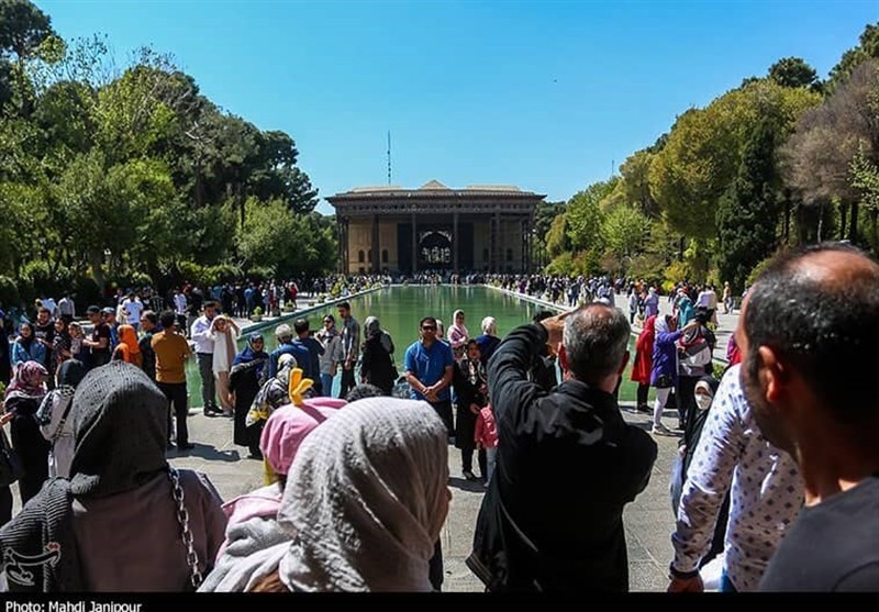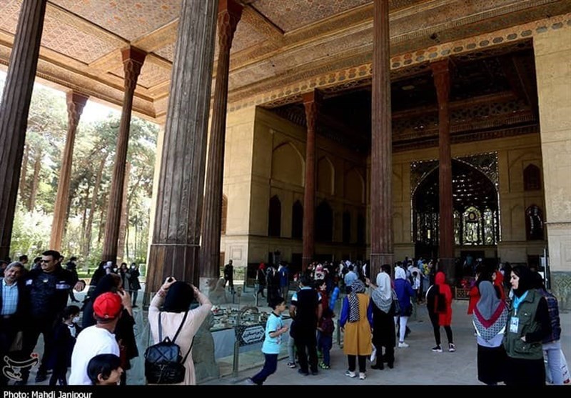 روایت تصویری حضور گردشگران نوروزی در چهلستون اصفهان