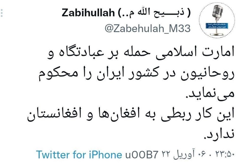 به گزارش گروه بینالملل خبرگزاری تسنیم، دولت موقت طالبان حادثه حرم مطهر رضوی(ع) را محکوم و اعلام کرد این حادثه ربطی به افغانها و افغانستان ندارد.