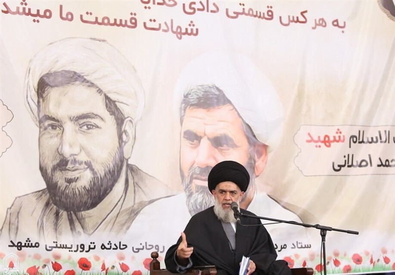 حجتالاسلام مومنی استاد حوزه علمیه در این مراسم بیان کرد: حجت الاسلام و المسلمین اصلانی و حجت الاسلام دارایی با زبان روزه و لب تشنه و لباس مقدس روحانیت در حرم امام رضا(ع) در خون خود غلتیدند و به مقام شهادت نائل شدند که این موضوع باید تبیین شود.