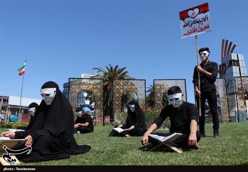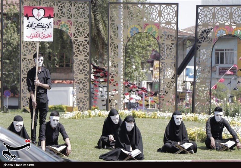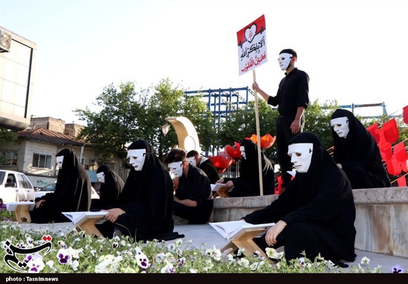 وی درباره نحوهی اجرای این پرفورمنس نمایشی، گفت: جمعی از افراد با چهره و پوششهای یکسان در زوایایی از میدانها نشستند؛ در مقابل کلیه این افراد رحل و قرآنی به چشم می خورد و آن ها بدون توجه به هیاهوی شهری مشغول به تلاوت قرآن بودند و در میانه ی این جمعیت تابلوی با محتوای «الا بذکرالله تطمئن القلوب» به چشم میخورد.