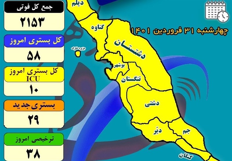 12 روز بدون فوتی کرونایی در استان بوشهر ثبت شد