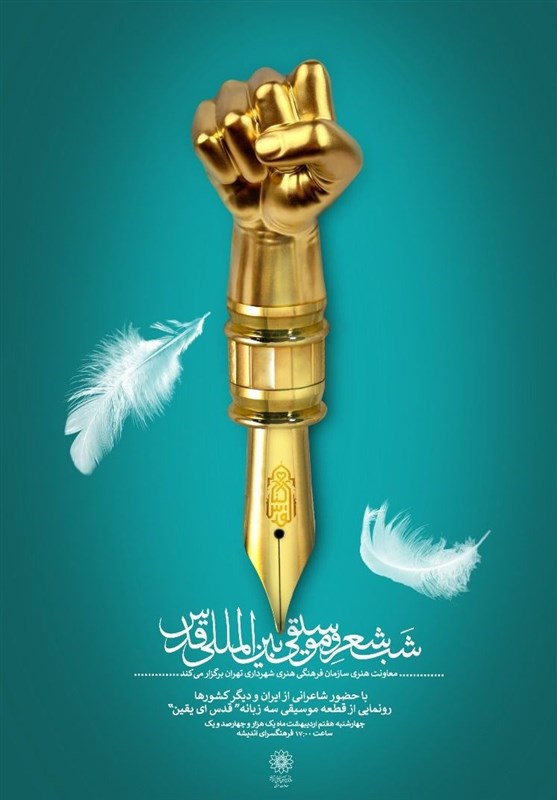 به گزارش خبرگزاری تسنیم، در آستانه چهل و سومین سالروز برگزاری روز قدس، معاونت هنری سازمان فرهنگی هنری شهرداری تهران سومین شب شعر و موسیقی بینالمللی قدس را با حضور شاعران و اجرای سرودهای مقاومت چهارشنبه هفتم اردیبهشت ماه ساعت 17 در فرهنگسرای اندیشه برگزار میکند.