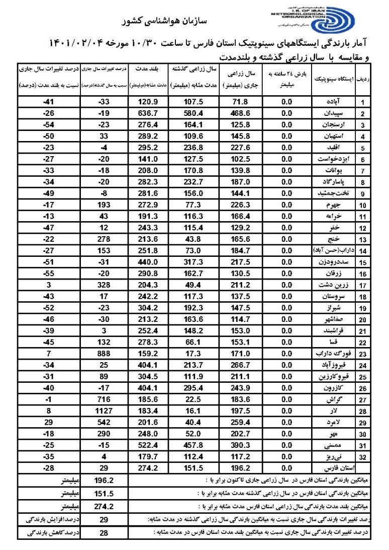 در مقابل این اعلام آمار منتشر شده از بارشها و ذخایر سدهای استان است که براساس آخرین آمار که مربوط به 4 اردیبهشت ماه است میانگین بارندگی استان در سال زراعی جاری 196.2 بوده که این میزان در مدت مشابه سال گذشته 151.5 بوده است.
