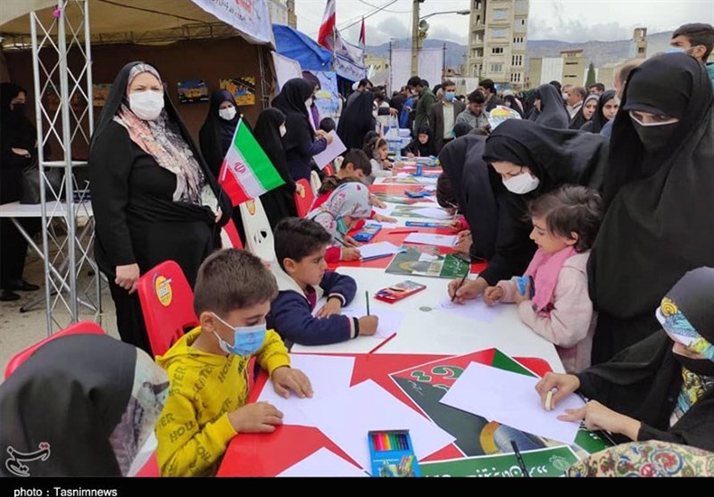 مدیر کانون پرورش فکری کودکان و نوجوانان ایلام با تاکید بر حضور همکاران و کودکان و نوجوانان در راهپیمایی، غرفه ای ویژه کودکان و نوجوانان در محل مصلی شهر ایلام دایر نمودیم که در این غرفه کودکان می توانند نقاشی کنند.