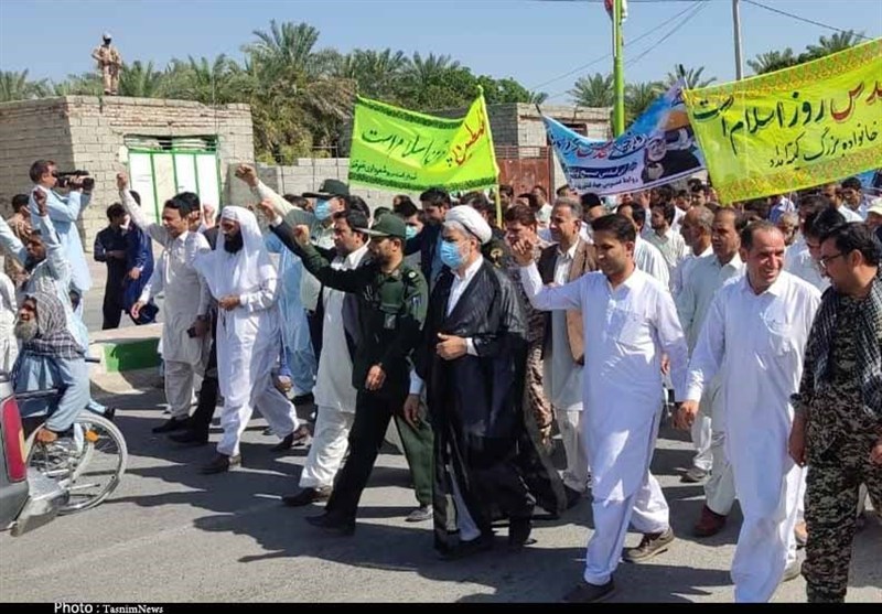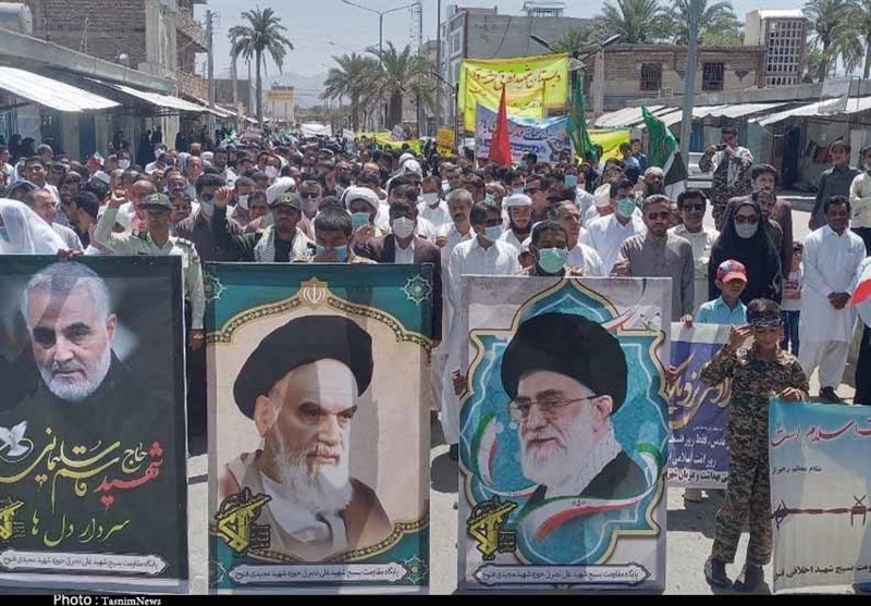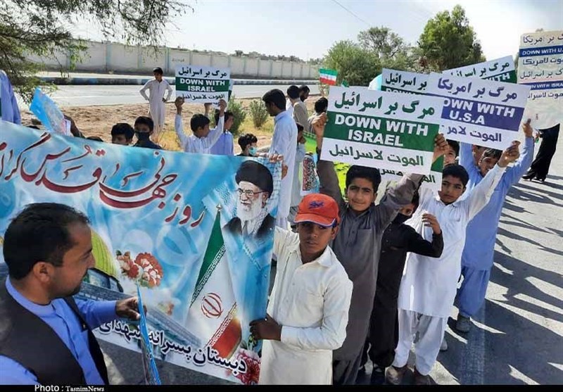 به گزارش خبرگزاری تسنیم از سیستان و بلوچستان، به گزارش خبرگزاری تسنیم از زاهدان، مردم روزه‌دار شیعه و سنی شهرستان‌های مختلف استان سیستان و بلوچستان پایتخت وحدت ایران اسلامی امروز با حضور گسترده خود در راهپیمایی روز جهانی قدس ضمن اعلام حمایت از ملت مظلوم فلسطین، خشم و انزجار خود را از جنایات استکبار جهانی و در رأس آن رییم صهیونیستی به نمایش گذاشتند.