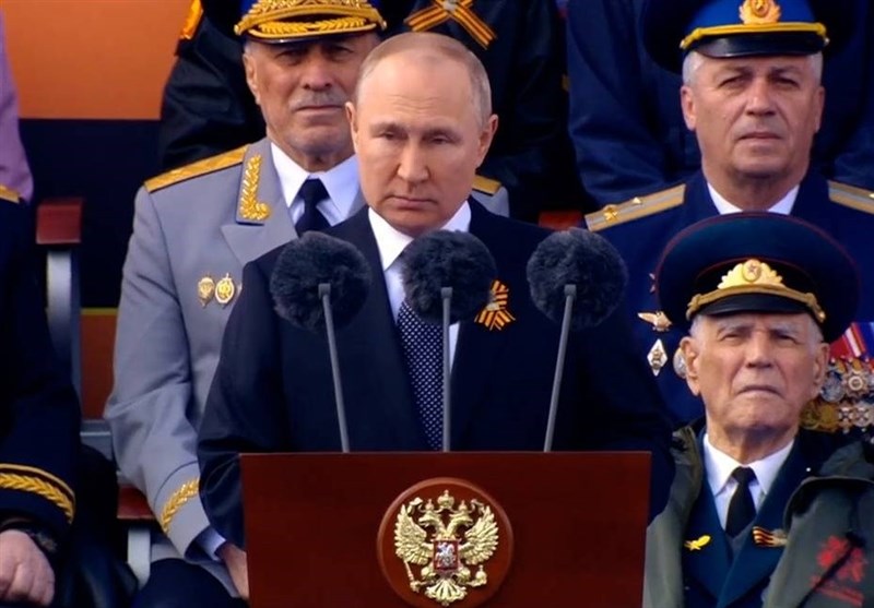 ولادیمیر پوتین تاکید کرد: «این روزها، نیروهای مسلح روسیه در جریان عملیات نظامی ویژه در اوکراین، برای دفاع از مردم ساکن دونباس و برای تامین امنیت سرزمین مادری همه ما - روسیه، در حال جنگیدن هستند. مردم روسیه به نسل شکست ناپذیر و شجاع افرادی که در جنگ جهانی دوم پیروز شدند افتخار میکنند. و وظیفه ما این است که یاد و خاطره کسانی که رژیم نازیسم را درهم شکستند، حفظ کنیم، کسانی که به ما وصیت کردند: هوشیار باشیم و هر کاری انجام دهیم تا وحشت وقوع یک جنگ جهانی هرگز دیگر تکرار نشود.»