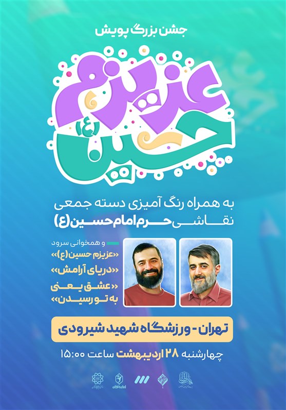 به گزارش خبرنگار فرهنگی خبرگزاری تسنیم، اختتامیه پویش «عزیزم حسین(ع)» چهارشنبه 28 اردیبهشت از ساعت 15 در ورزشگاه شیرودی تهران برگزار میشود. این مراسم با رنگ آمیزی دسته جمعی نقاشی حرم امام حسین(ع) و همخوانی سرود «عزیزم حسین(ع)»، «دریای آرامش» و «عشق یعنی به تو رسیدن» همراه خواهد بود.