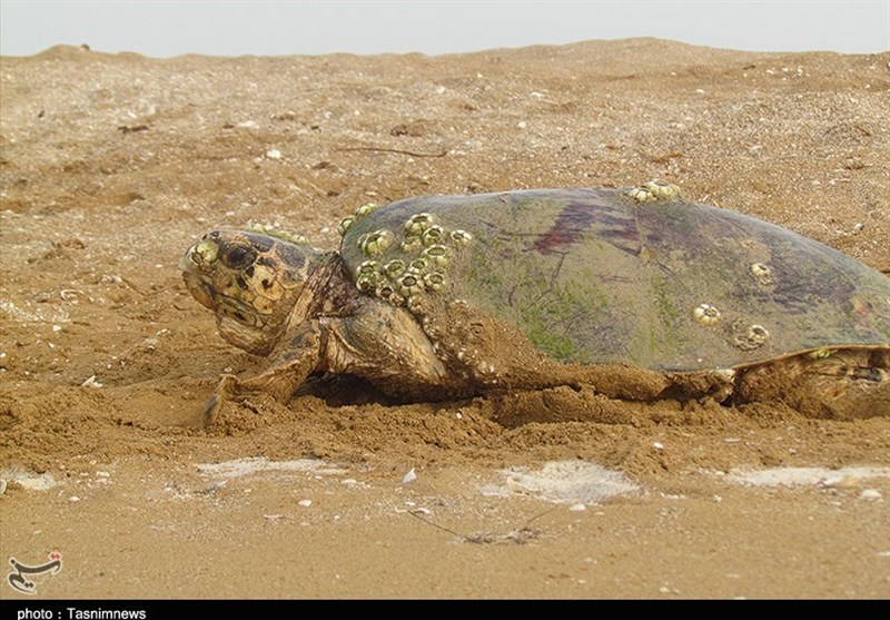 آغاز تولد لاک پشتهای منقار عقابی در پارک ملی دریایی نایبند شهرستان عسلویه