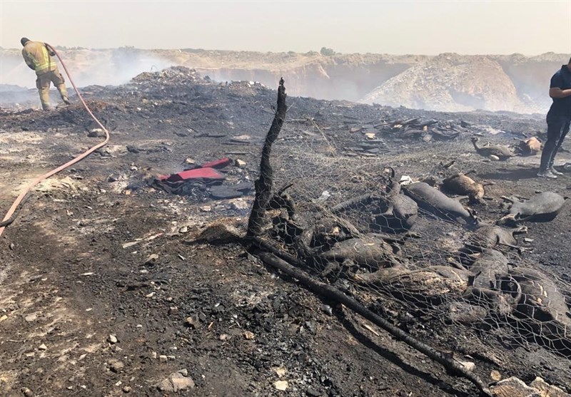 محل حادثه یک قطعه زمین به وسعت حدود 400 تا 500 متر و مهار شده با فنسهای فلزی بود که در آن تعداد زیادی گوسفند نگهداری میشد؛ دور این فنسها و دقیقا چسبیده به آن مقدار زیادی لاستیکهای ضایعاتی و در طرف دیگر ضایعات لاستیک و چوب، چوب و جعبه نگهداری میشد که ضایعات در هر دو قسمت دچار آتشسوزی شده و متاسفانه باد در حال وزش نیز در جهت شعله بود.
