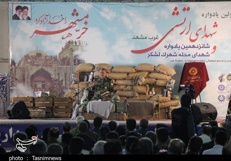 به گزارش خبرگزاری تسنیم از مشهدمقدس،امیر سرتیپ رضا آذریان، فرمانده قرارگاه منطقهای شمال شرق نزاجا شب گذشته همزمان با سوم خرداد سالروز آزادسازی خرمشهر در اولین یادواره شهدای ارتشی غرب مشهد( منطقه قاسم آباد) اظهارداشت:در عملیات بیت المقدس هدف تنها فتح خاک نبود بلکه حفظ ارزشهای انقلاب اسلامی و احیای ارزشهای اسلامی از دستاوردهای مهم این عملیات است و رزمندگان اسلام در این عملیات کاری کردند که این عملیات در تاریخ نظامی و جنگهای جهان ثبت شد.