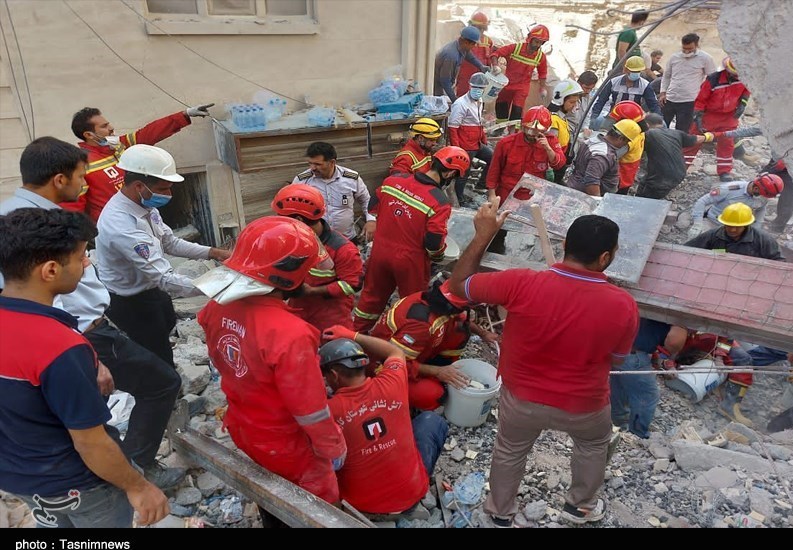 بهگزارش خبرگزاری تسنیم از آبادان، در شرایطی پنجمین روز از حادثه ریزش ساختمان 10طبقه در آبادان را سپری میکنیم که نیروهای انتظامی، امدادی، اورژانس کنار سایر نیروهای تخصصی مرتبط همچنان مشغول ارائه خدمات برای رفع مشکلات و جلوگیری از بروز حادثهای تازه در این محوطه هستند،