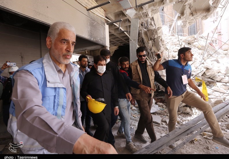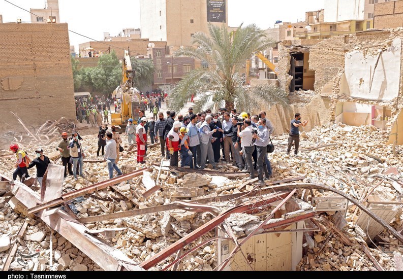 دکتر مخبر در این بازدید میدانی که استاندار خوزستان، رییس جمعیت هلال احمر، مقامات محلی و متصدیان امور امدادرسانی و درمانی حضور داشتند، با گزارش مسئولان مربوطه در جریان پیشرفت عملیات جست و جو و آواربرداری از این ساختمان یازده طبقه قرار گرفت و همچنین در گفت و گویی با نجاتگران هلال احمر، آتش نشانی و نیروهای مردمی از زحمات آنان قدردانی کرد.