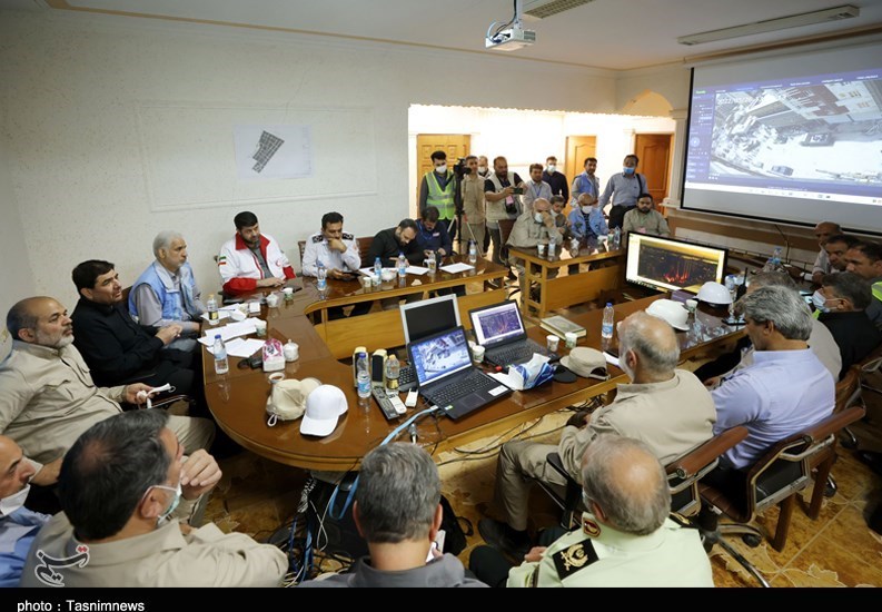 پس از این بازدید دکتر مخبر در مرکز فرماندهی عملیات پاسخ به بحران حضور یافت و مسئولان ذیربط گزارشی از اقدامات انجام شده، نحوه امدادرسانی به مصدومان در روزهای گذشته، عملیات آوار برداری و خاکبرداری، اقدامات در راستای تسریع عملیات جست و جو، مشکلات و برخی نیازمندی ها برای پیشرفت عملیات آواربرداری را ارایه کردند.