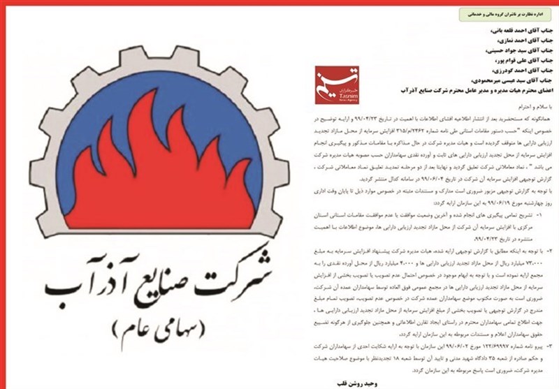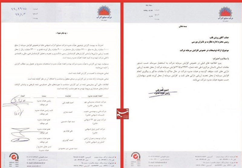 نکته عجیب و قابل توجه آنجا بود که علیرغم تصمیم مقامات استان و مصوبه شورای تأمین در رابطه با موضوع افزایش سرمایه شرکت آذرآب که همانطور که گفته شد تأکید بر این است بهمنظور ورود نقدینگی و حل مشکلات ناشی از عدم وجود سرمایه در گردش هرگونه افزایش سرمایه صرفاً از محل آورده نقدی سهامداران انجام گیرد اما طبق اطلاعیه منتشره در سامانه کدال هیئتمدیره شرکت آذرآب در پیشنهاد افزایش سرمایه خود علاوه بر افزایش سرمایه از محل آورده نقدی موضوع افزایش سرمایه فوق سنگین از محل تجدید ارزیابی داراییها را نیز مطرح کرد که سازمان بورس در نامهای خواستار ارائه مدارک و مستندات و شفاف سازی مواردی در این رابطه و همچنین وضعیت موافقت یا عدم موافقت مسئولین استان شده است.