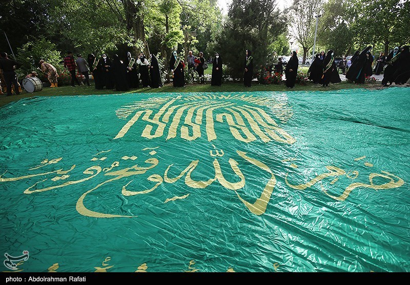 اهتزاز بزرگ‌ترین پرچم سبز رضوی کشور در تهران