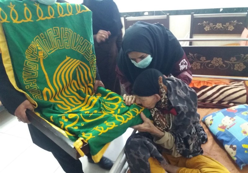 مددجویان سالمند و معلولانی که ساعتها چشم انتظار پرچم سبز رضوی بودند خود را به محوطه مرکز رسانده تا عطر رضوی را از نزدیک استشمام کنند.