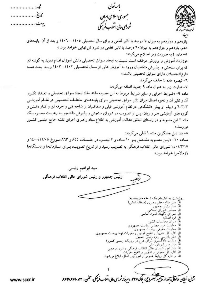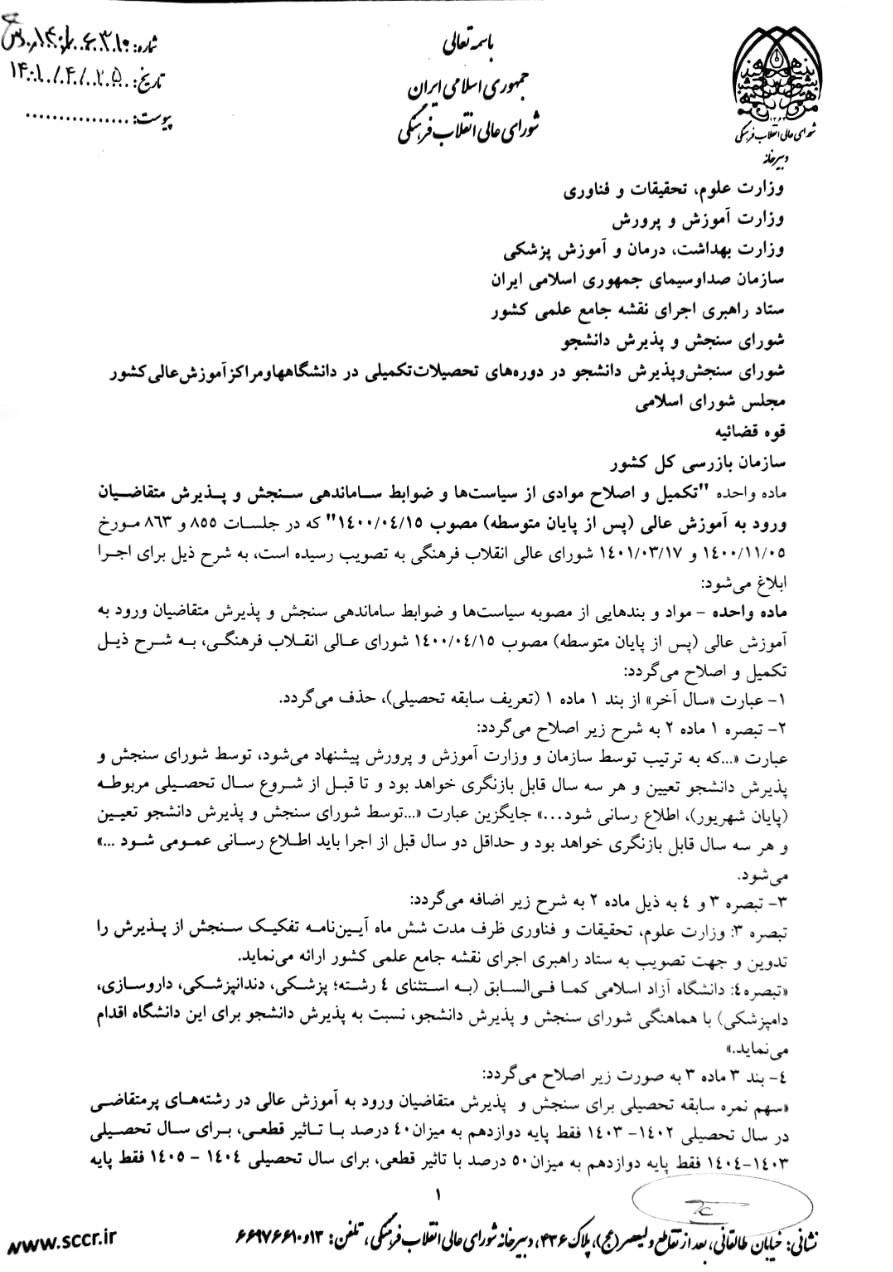 متن اصلاحیه این مصوبه را در ادامه مشاهده میکنید: