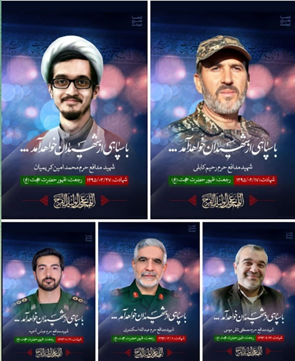 به گزارش تسنیم، در راستای پیگیری دستور سردار سرافراز سپاه اسلام ،شهید حاج قاسم سلیمانی مبنی بر پیگیری ویژه مفقودین محور خان طومان،با عنایات الهی و تلاش های مستمر و شبانه روزی گروه تفحص ،هویت پیکر مطهر پنج شهید مدافع حرم از استان های مازندران ،البرز و فارس با نام های سردار شهید "عبدالله اسکندری"، سردار شهید "رحیم کابلی"، شهید والامقام "مصطفی تاش موسی"، شهید والامقام "محمد امین کریمیان" و شهید والامقام "عباس آسمیه"، از طریق تطبیق نمونه DNA در مرکز ژنتیک سپاه شناسایی و تایید شد و پیکرهای مطهر این شهدای والامقام به میهن اسلامی بازگشت.