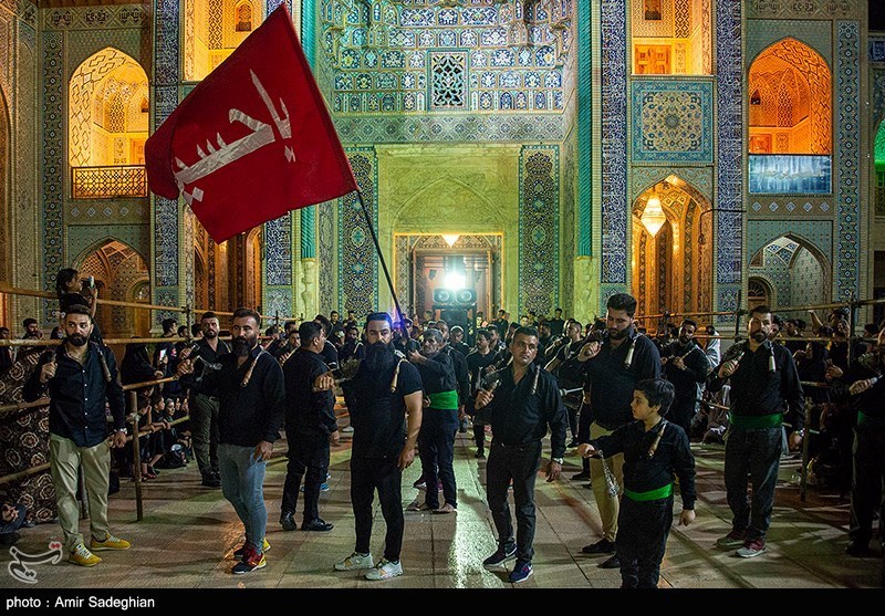 عزاداران در قالب دستههای سینهزنی و زنجیرزنی وارد حرم مطهر شدند و با برپایی عزاداری در غم شهادت بابالحوائج حضرت عباس(ع) اشک ماتم ریختند.