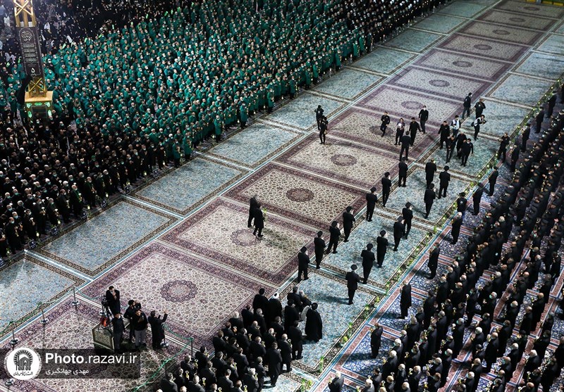 انبوه زائرانی که در مراسم خطبهخوانی شب عاشورا حضور یافتهاند، دم نوحه ذاکران اهل بیت(ع) را تکرار میکنند و همزمان بر سر و سینه میزنند. اشکهای روانشان هم حکایت از دلدادگیهایی دارد که پایانی برای آن نیست.