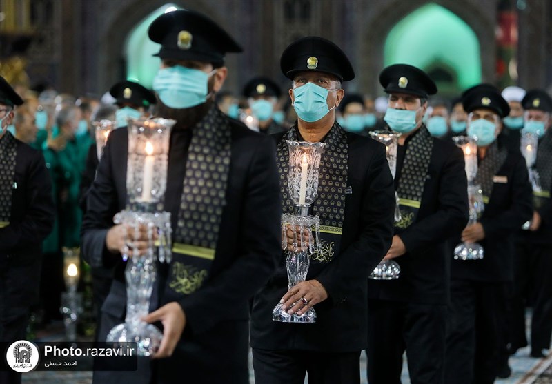 خادمان حرم امام هشتم(ع) طبق رسم هر ساله شمع در دست، در ردیفهای منظم مقابل ایوان ولیعصر(عج) نشستهاند و منتظر شروع مراسماند. بعد از نماز مغرب و عشاء، برگزاری مراسم خطبهخوانی شب عاشورا از طریق بلندگوهای سراسر حرم مطهر رضوی اطلاعرسانی میشود و زائران و مجاوران برای حضور در این مراسم خود را به صحن پیامبر اعظم(ص) میرسانند.
