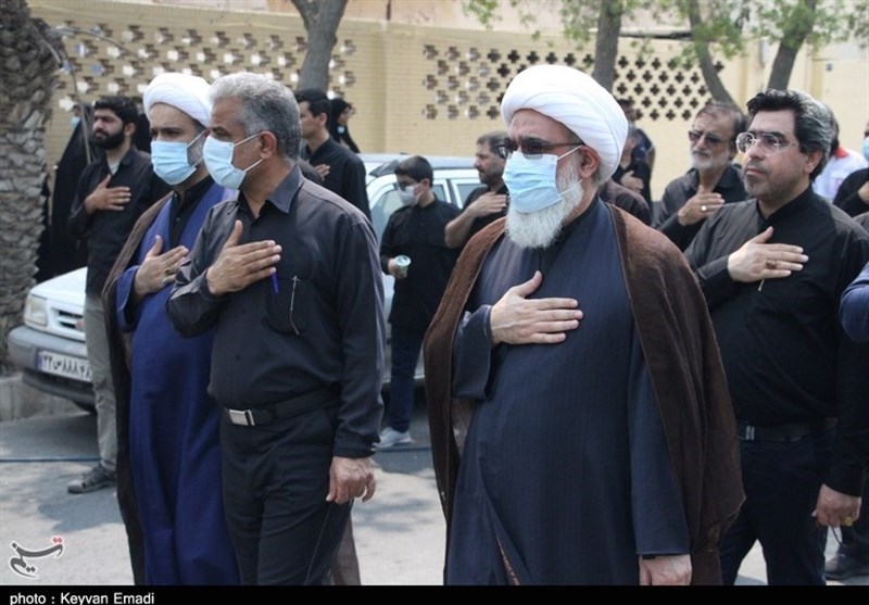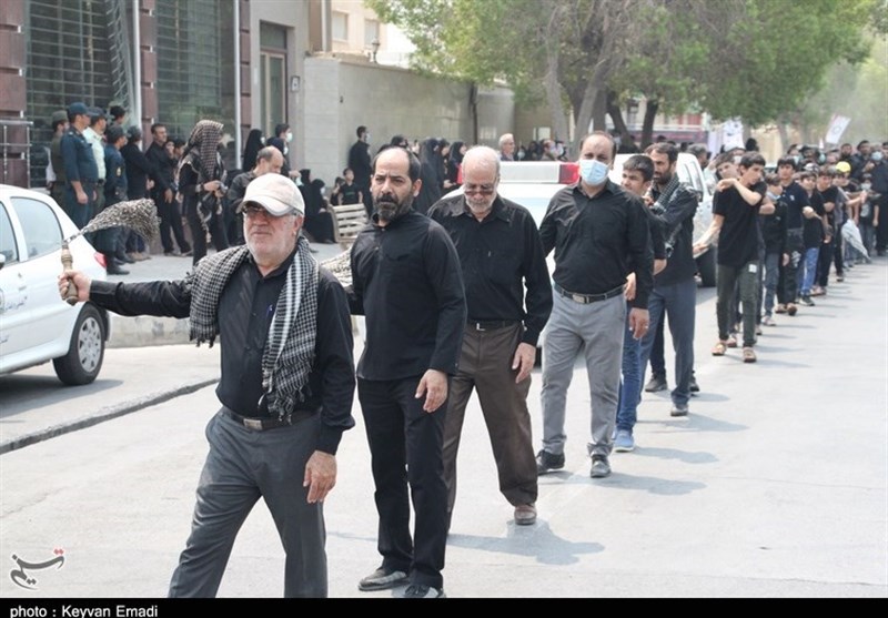 آیین عزاداری در سوگ شهادت سید و سالار شهیدان حضرت امام حسین علیهالسلام و دیگر شهدای دشت نینوا در روز عاشورا با حضور هیئتهای مذهبی و انبوه عزاداران حسینی در خیابانهای منتهی به مصلا جمعه بوشهر برگزار شد.