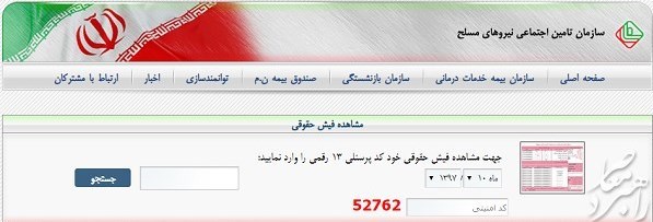 دریافت فیش حقوقی بازنشستگان نیروهای مسلح از طریق سایت تامین اجتماعی نیروهای مسلح ممکن شده است.
