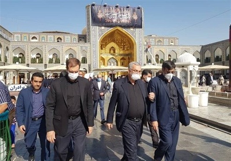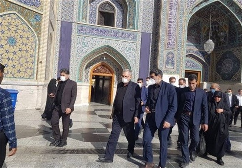 بهرام عیناللهی و هیئت همراه در بدو ورود به این شهر مقدس به زیارت امام هشتم(ع) مشرف شد.
