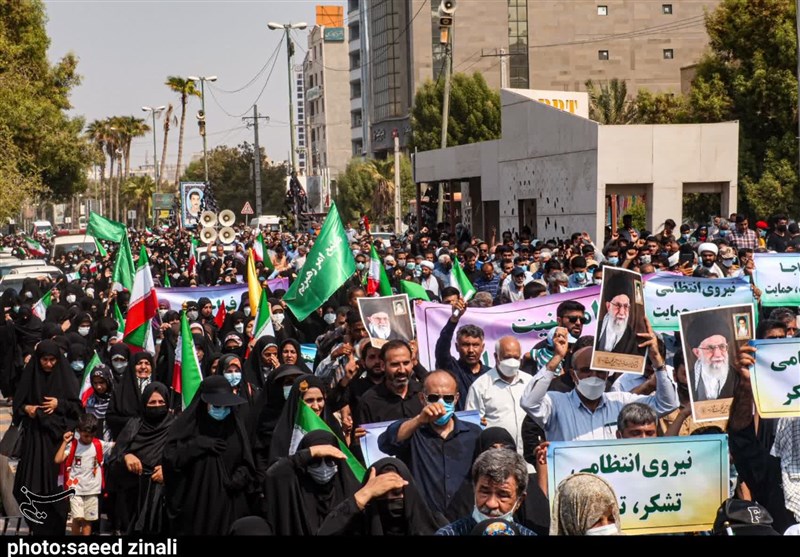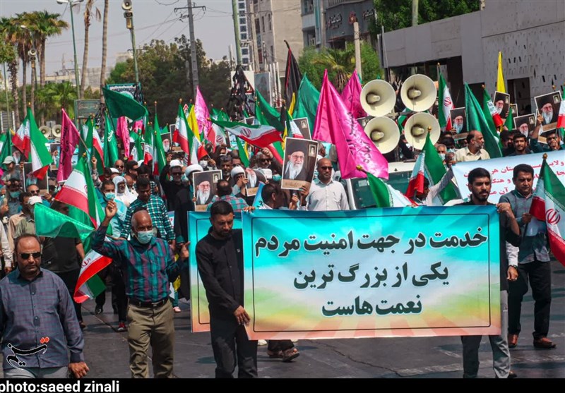 به گزارش خبرگزاری تسنیم از بندرعباس، ظهر امروز همزمان با سایر مناطق کشور، مردم استان هرمزگان در جای جای این خطه، بعد از برگزاری نماز جمعه به خروش آمدند و علیه اقدامات اغتشاشگران در روزهای اخیر راهپیمایی گسترده ای برگزار کردند.
