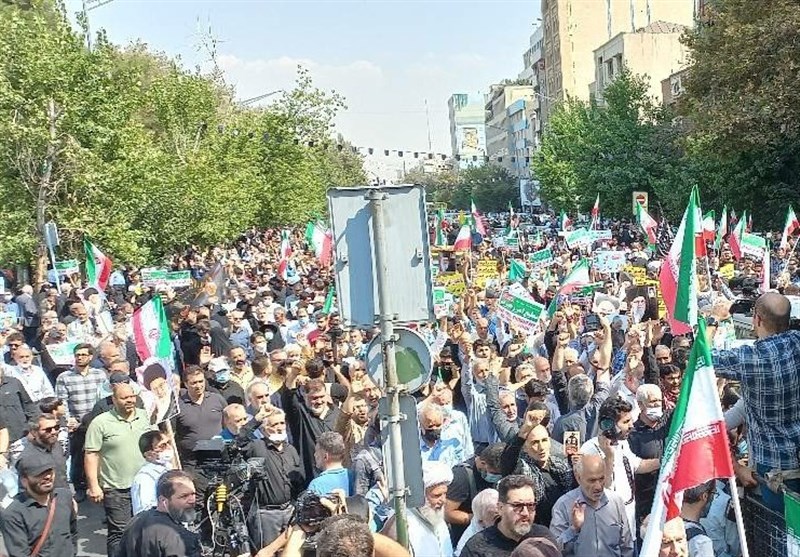 راهپیمایی کنندگان محکومیت آشوب و اغتشاش در کشور درحالیکه شعارهای همیشگی ملت غیور ایران یعنی مرگ بر آمریکا، اسرائیل و انگلیس را بر لب داشتند، ضمن نفی هرگونه اغتشاش و هرجومرج در کشور به بهانه مطالبه گری و تأکید بر پیگیری مسائل اخیر از مجاری قانونی، به سردمداران غربی، صهیونیستی و سعودی اعلام کردند که باید آرزوهای خود برای بهزانو درآوردن ملت ایران را به گور ببرند.