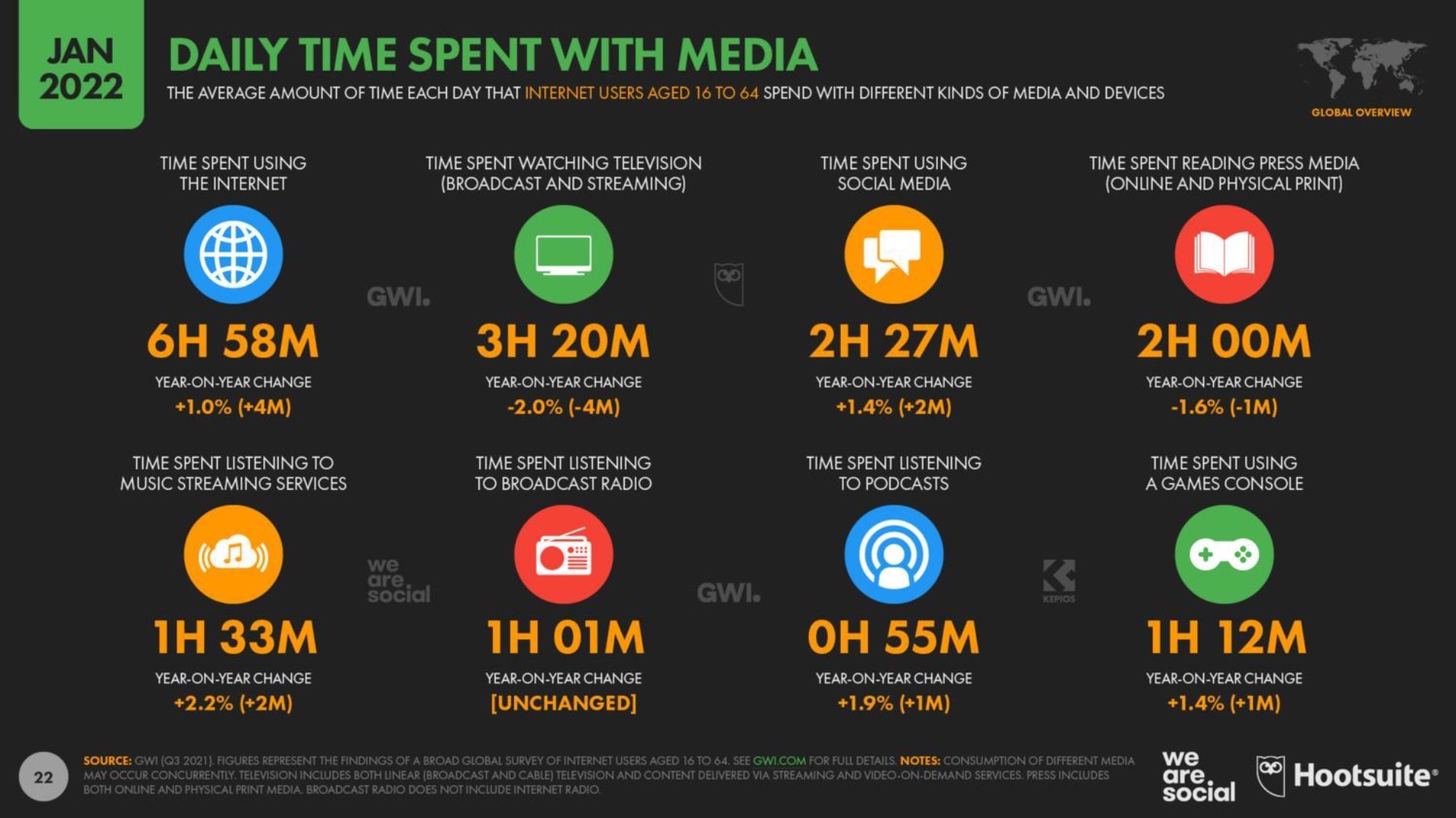 گلوبال دیجیتال ریپرتر در آخرین گزارش خود از میزان وقتی که کاربران در میان صفر و یک‌های مجازی سپری می‌کنند، آورده، بررسی‌های انجام شده میان کاربران 16 تا 64 سال نشان داده که در حال حاضر هرکاربر فضای مجازی به میزان 6 ساعت و 55 دقیقه از روز خود را در این فضا سپری کرده و به دنبال داده‌های مورد نظرش است.