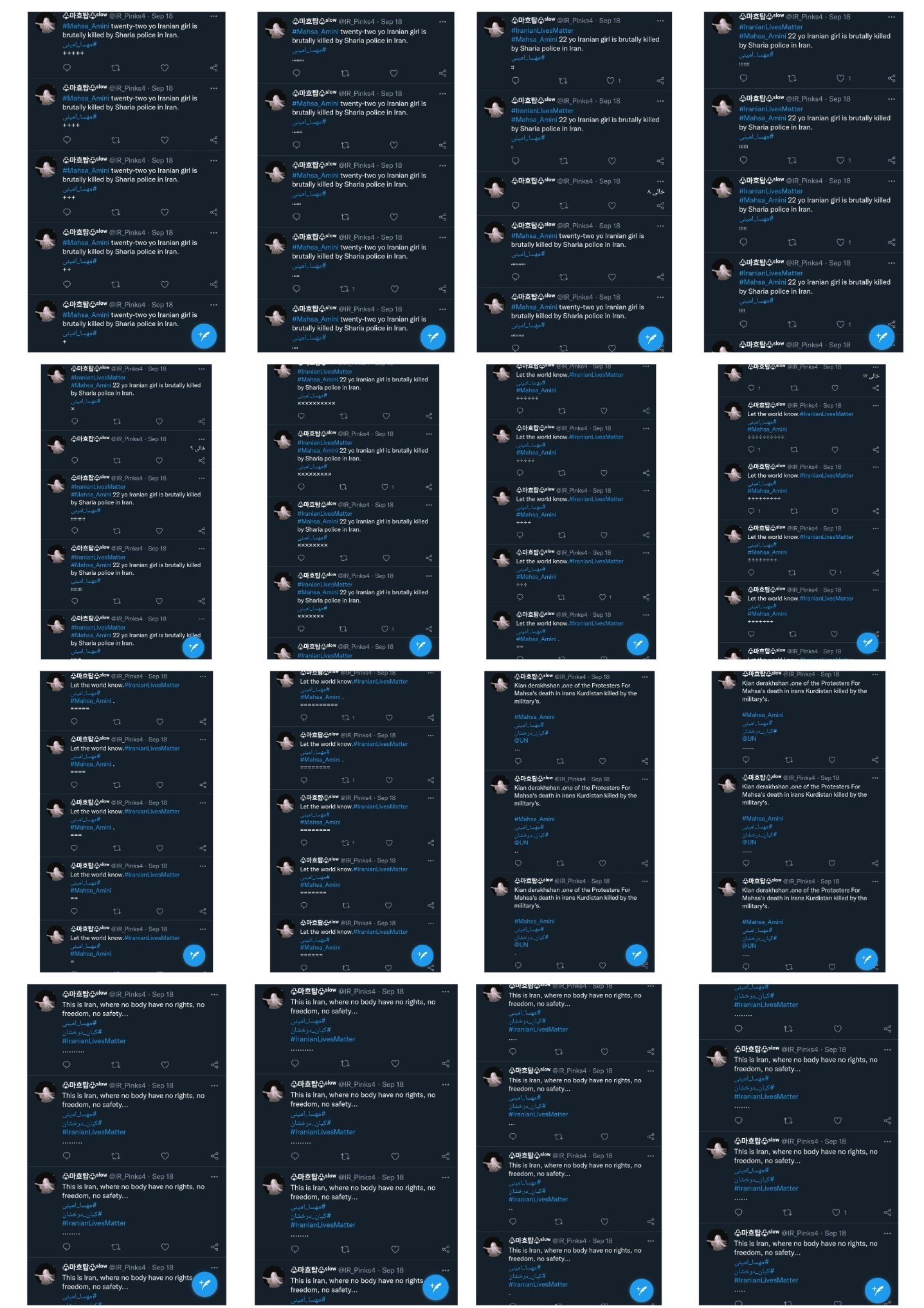 تکرار هشتک مهسا امینی به وسیله یک اکانت فیک توئیتری