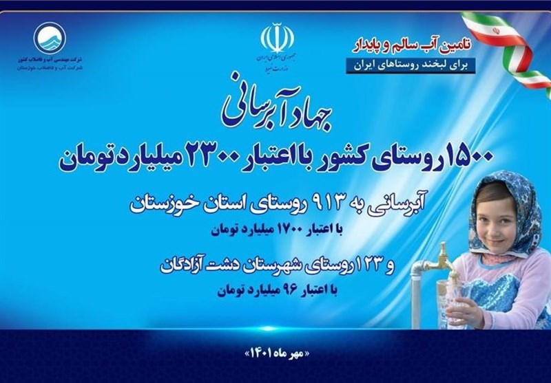 براساس این گزارش، همزمان در سراسر کشور طرح آبرسانی به یک هزار و 500 روستا با اعتباری باِلغ بر 23 هزار میلیارد ریال افتتاح شد که بیشترین آمار مربوط به خوزستان است که این برنامه به صورت نمادین در شهرستان حمیدیه برگزار شد.