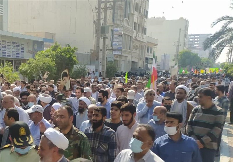 راهپیمایان در میدان قدس بوشهر تجمع کردند و بار دیگر دیگر اقتدار خود را در دفاع از انقلاب و نظام جمهوری اسلامی به نمایش گذاشتند.