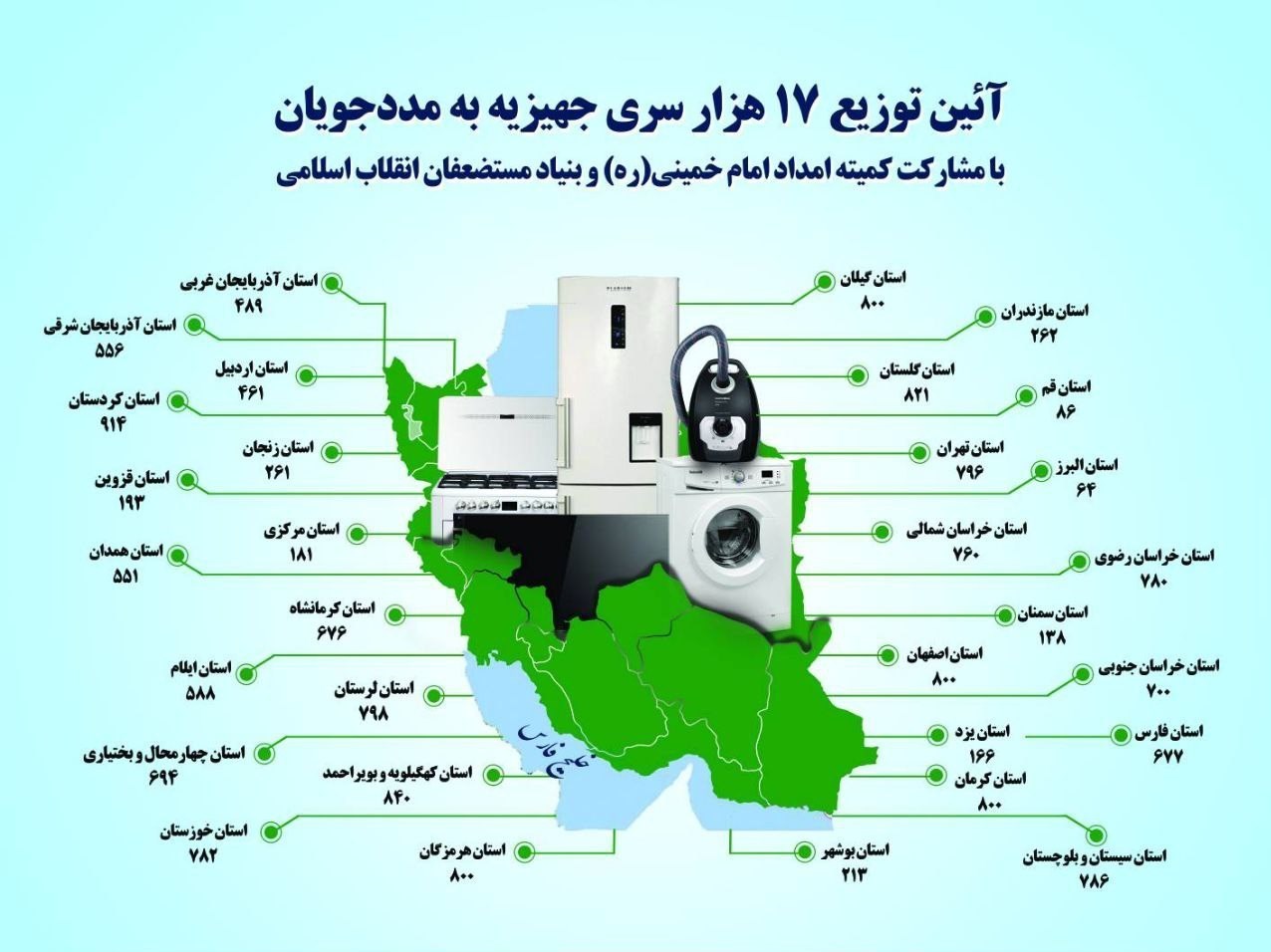 رئیس کمیته امداد امام خمینی با اشاره به توزیع 17 هزار و 433 سری جهیزیه به مددجویان تحت پوشش کمیته امداد خاطرنشان کرد: اجناس تهیه شده کاملاً تولید داخل بوده و به لحاظ کیفیت نیز شرایط خوبی را دارند ضمن اینکه هیئت امنای کمیته امداد نیز تاکید ویژهای بر استفاده از اقلام داخلی و با کیفیت داشتهاند که در همین ارتباط به هر زوج 5 قلم کالا با ارزش ریالی 23 میلیون تومان توزیع خواهد شد.