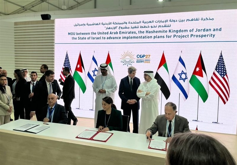 به گزارش گروه بینالملل خبرگزاری تسنیم، امارات متحده عربی، اردن و رژیم صهیونیستی در حاشیه برگزاری اجلاس جهانی تغییرات اقلیمی در شرمالشیخ مصر مرحله دیگری از توسعه طرح «آب در برابر برق» را به امضا رساندند.