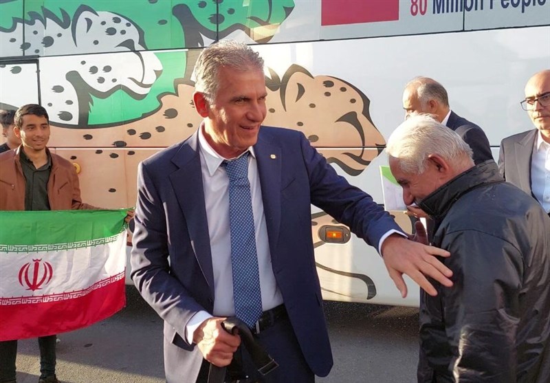 ملیپوشان و اعضای کادر تیم ملی پس از پایین آمدن از پلکان هواپیما و در میان استقبال رسانههای بین المللی وارد سالن اصلی فرودگاه شد و در کمترین زمان ممکن پس از انجام کارهای ورود به قطر با اتوبوس مخصوص تیم ملی که منقش به پرچم ایران است به سمت هتل الریان حرکت کرد.