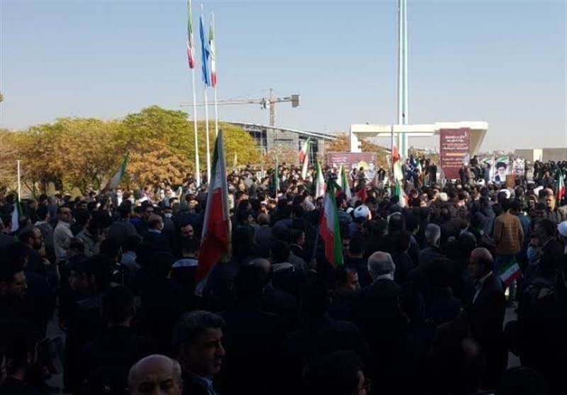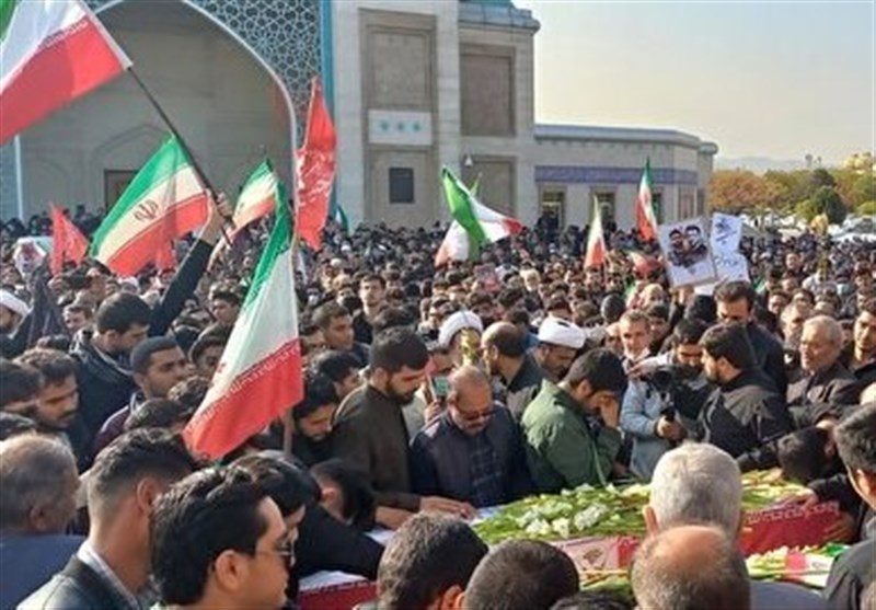 دانشجویان و اساتید در مراسم وداع با پیکر شهدای سیجی امنیت مشهد خواهان پایان مماشات  و برخورد قاطع با اغتشاشگران شدند.