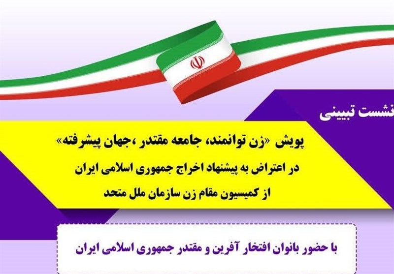 این نشست در اعتراض به طرح پیشنهاد اخراج جمهوری اسلامی ایران از کمیسیون مقام زن سازمان ملل متحد برگزار شده و در خلال آن از جمعی از زنان مقتدر و افتخارآفرین جمهوری اسلامی ایران به ایراد نقطه نظرات خود می پردازند.