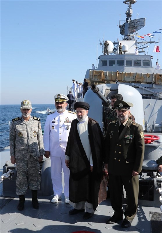 به گزارش گروه دفاعی خبرگزاری تسنیم، آیتالله رئیسی صبح امروز و در آستانه روز نیروی دریایی ارتش با حضور در منطقه دوم دریایی ولایت بندر جاسک و با حضور در ناوشکن سهند به عنوان ناو سرفرماندهی، از رژه یگانهای نمونه زیرسطحی، سطحی و پروازی ارتش جمهوری اسلامی ایران بازدید کرد.