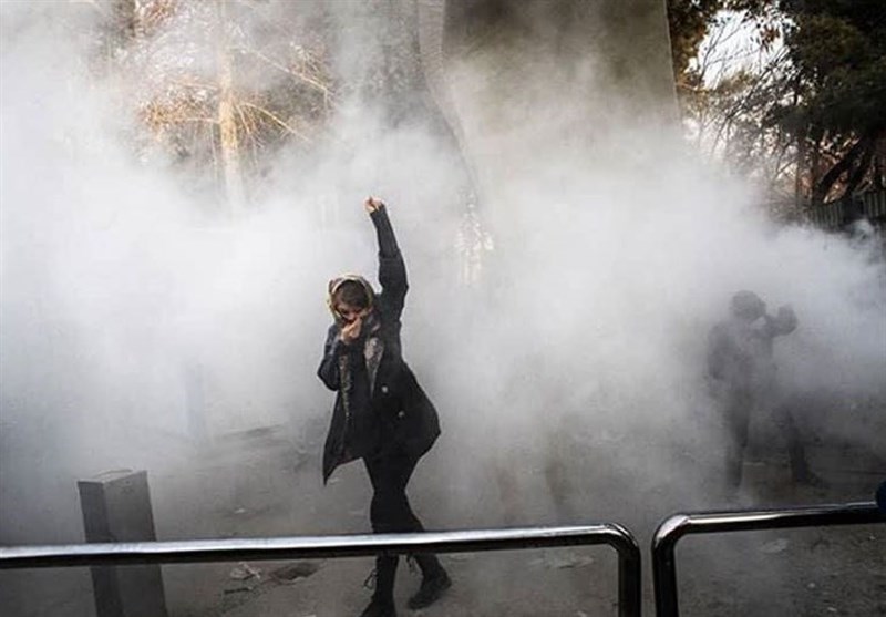 در تصویر مورد اشاره، زنی با مشت گرهکرده میان دود دیده میشود و بهوضوح صحنهسازی و بازی با افکار عمومی در آن مشهود است و اینگونه به ذهن متبادر میشود که مرتبط با ناآرامیهای تهران است اما همانطور که خود این فرد هم در مصاحبهای به آن اعتراف کرده است، دودی که در عکس وجود دارد ناشی از پودر کپسول آتشنشانی است و فقط شبیه استفاده گاز اشکآور است.