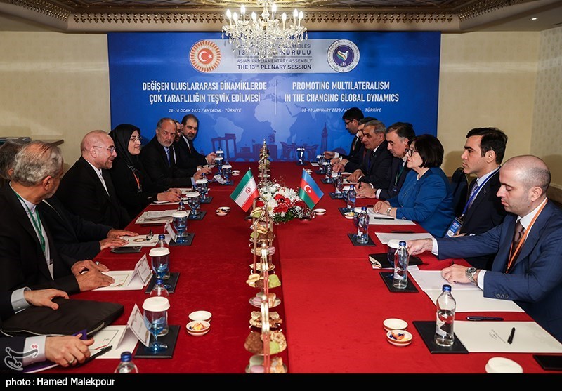 به گزارش گروه پارلمانی خبرگزاری تسنیم، صاحبه غفاراوا، رئیس مجلس ملی آذربایجان، عصر امروز (دوشنبه 19 دی 1401) در حاشیه نشست مجمع مجالس آسیایی با محمدباقر قالیباف، رئیس مجلس شورای اسلامی که برای شرکت در این اجلاس به ترکیه سفر کرده است دیدار و گفتوگو کرد.