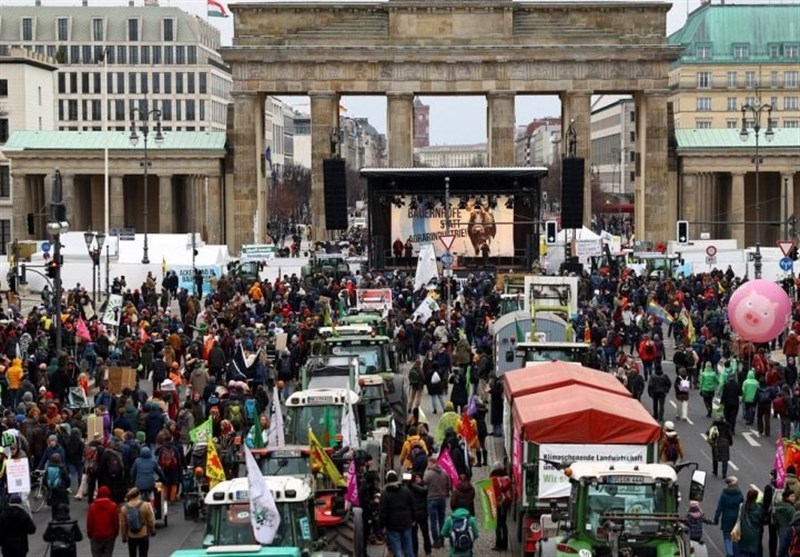 به گزارش گروه بین الملل خبرگزاری تسنیم به نقل از نشریه "دی سایت" آلمان، کشاورزان از سراسر آلمان علیه سیاست کشاورزی دولت فدرال آلمان به مناسبت نمایشگاه غذای هفته سبز در برلین اعتراض کردند. کشاورزان با 55 تراکتور از جهات مختلف به سمت دروازه براندنبورگ حرکت کردند. معترضان بنرها و تابلوهایی با شعارهایی مانند "صنعت کشاورزی را می کشید!" یا حفاظت از حشرات و غذای خوب برای همه به جای سود برای چند نفراعتراض کردند. به گفته سازمان دهندگان این تجمع اعتراضی حدود 10 هزار نفر در این تظاهرات مشارکت کردند.