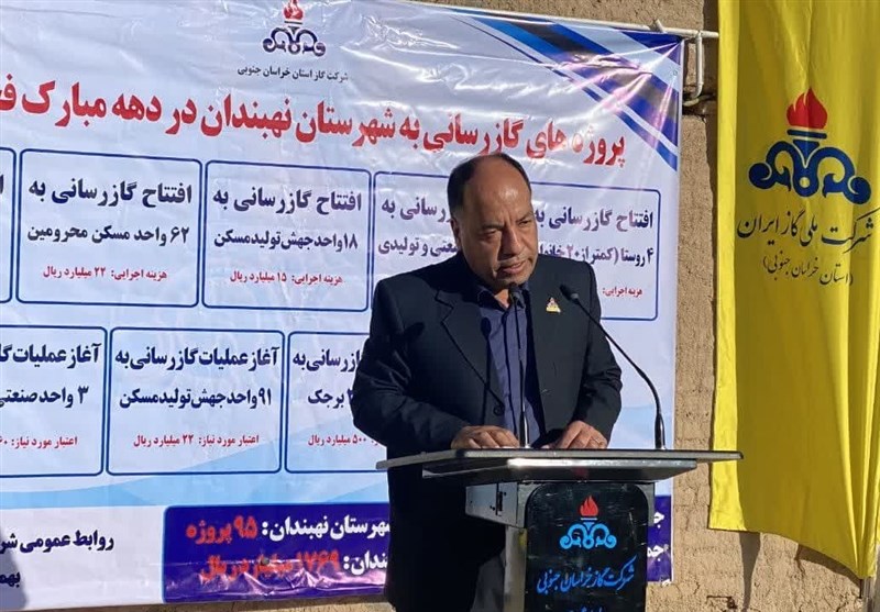 به گزارش خبرگزاری تسنیم از بیرجند، همزمان با ششمین روز از دهه مبارک فجر و با حضور استاندار خراسان جنوبی ، مدیرعامل شرکت گاز استان، امام جمعه نهبندان و جمعی از مسئولین استانی و شهرستانی 95 پروژه گازرسانی با هزینه اجرایی و یا اعتبار مورد نیاز 177 میلیارد تومان در شهرستان نهبندان استان خراسان جنوبی افتتاح یا کلنگ زنی شد.