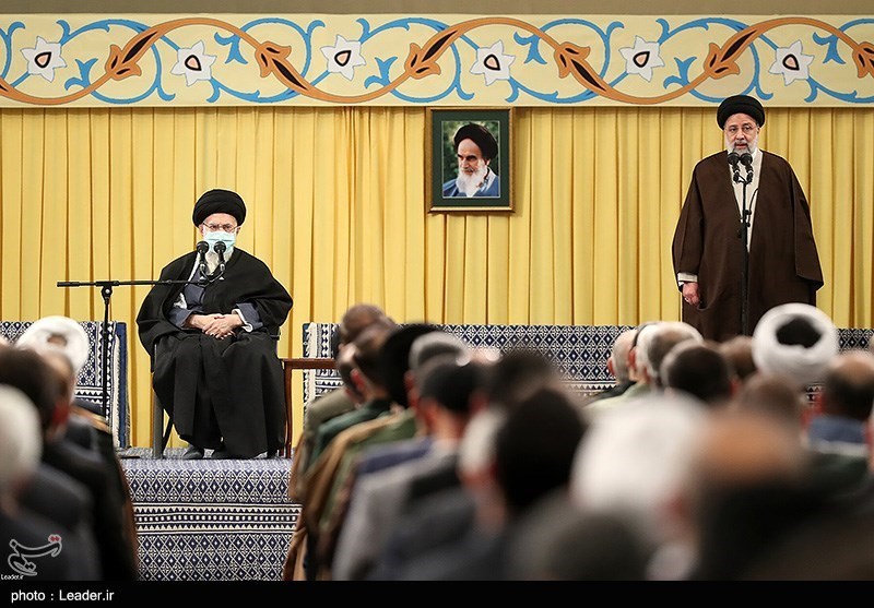 در ابتدای این دیدار، آیتالله سید ابراهیم رئیسی رئیسجمهور در سخنانی با بیان اینکه فلسفه بعثت، انسانسازی و جامعهسازی قرآنی است، گفت: پس از انقلاب اسلامی دشمنان همچون صدر اسلام با جنگ نظامی، اقتصادی، سیاسی و تبلیغاتی مقابل ملت ما صفآرایی کردهاند اما مردم ایران با استقامت مثالزدنی خود انواع توطئههای سلطهگران را ناکام گذاشتهاند.