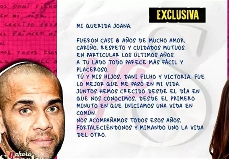 به گزارش خبرگزاری تسنیم و به نقل از مارکا؛ یک برنامه تلویزیونی در شبکه «آنتنا 3» اسپانیا به صورت انحصاری به نامهای که دنی آلوز از زندان برای همسرش ارسال کرده بود دسترسی پیدا و محتوای آن را منتشر کرده است.