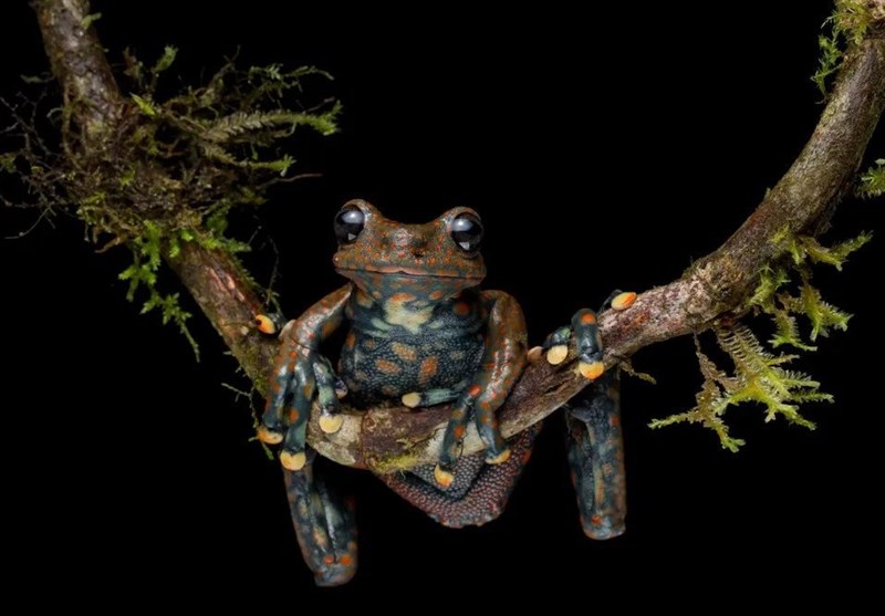 لوکاس بوستامانت عکاس این عکس میگوید: در میان زیباترین قورباغههای روی زمین، این قورباغههای خالدار به صورت محدود در آبشارهای اطراف کوهپایههای آند زندگی میکنند. اندازه آنها حدود 10 سانتیمتر است و رنگها و نقشهای چشمگیری دارند و عمدتاً نوک انگشتانشان رنگی است.