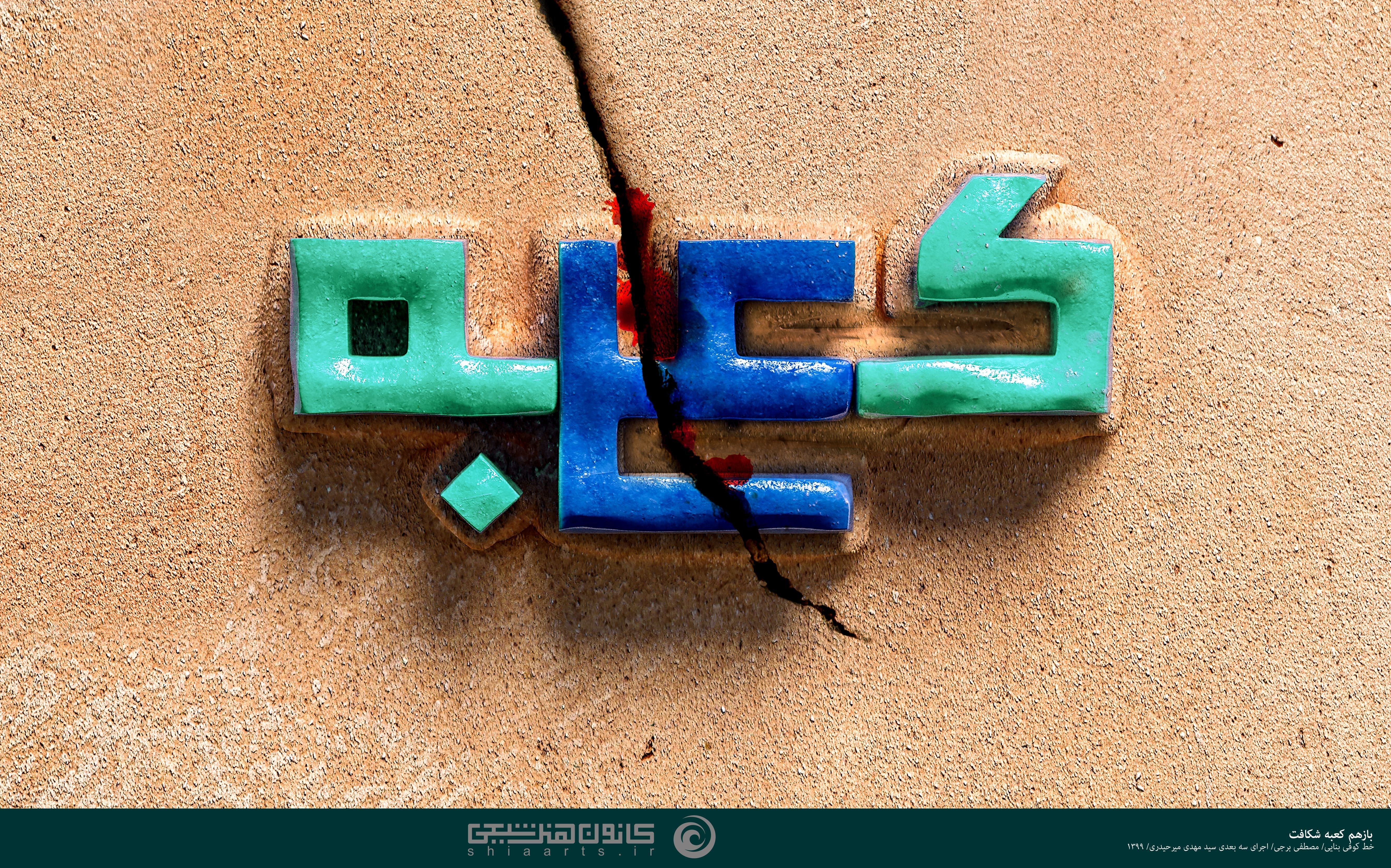 10. «باز هم کعبه شکافت»| خط کوفی بنایی| تکنیک: دیجیتال| هنرمندان: مصطفی برجی و سید مهدی میرحیدری| سال خلق: 1399