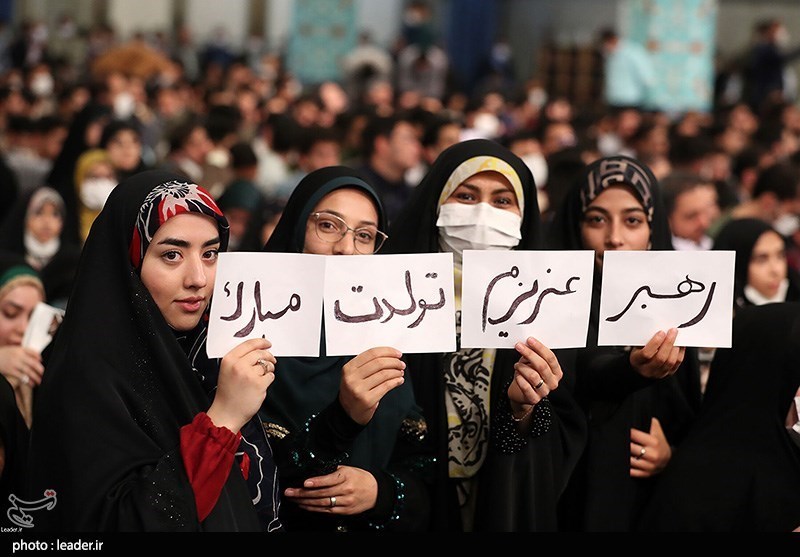 ـ ساعت حسینیه امام خمینی(ره) هنوز به 16 نرسیده بود که بخش اعظمی از جایگاه آقایان در حسینیه پر شده بود و به جمعیت بانوان نیز مدام افزوده میشد. دانشجویان با سر دادن شعارهایی از جمله "ای پسر فاطمه، منتظر تو هستیم"، این همه لشگر آمده به عشق رهبر آمده" و "علمدار تولدت مبارک" انتظار خود را برای دیدن رهبر انقلاب اعلام میکردند. حدود ساعت 16 و 25 دقیقه بود که رهبر انقلاب از جایگاه اصلی وارد حسینیه شدند و شعارهای دانشجویان به عباراتی نظیر "خونی که در رگ ماست هدیه به رهبر ماست" و "ای رهبر آزاده آمادهایم آماده" تبدیل شد. دانشجویان پس از لحظاتی دوباره با شور و هیجان خاصی مدتی به سردادن شعار "علمدار تولدت مبارک" پرداختند که این بار رهبر انقلاب با بیان اینکه "اجازه دهید قرآن تلاوت شود، تولد خیلی اهمیتی ندارد" خواستار شروع مراسم شدند.