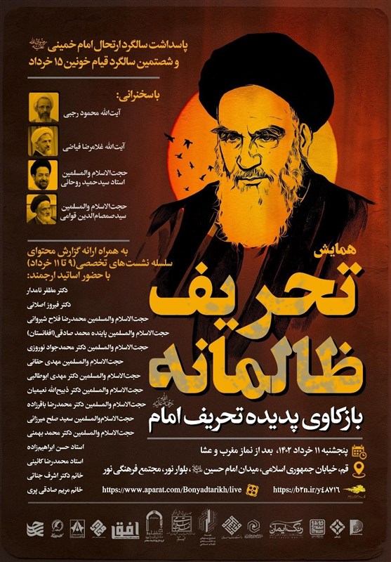 به گزارش خبرگزاری تسنیم، در آستانه سی و چهارمین سالگرد بزرگداشت ارتحال بنیانگذار جمهوری اسلامی ایران؛ حضرت امام خمینی قدس سرهالشریف و شصتمین سالگرد قیام خونین 15 خرداد بههمت جمعی از مراکز تخصصی و پژوهشی همایش «تحریف ظالمانه؛ بازکاوی پدیده تحریف امام» روز پنجشنبه 11 خرداد در مجتمع فرهنگی نور واقع در خیابان جمهوری اسلامی، میدان امام حسین(ع)، بلوار نور شهر قم برگزار میگردد.